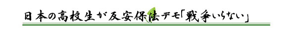 日本メディアの報(bào)道によると、安全保障関連法の施行が近づく中、ソーシャルメディアを通じて連絡(luò)を取り合った全國(guó)各地の高校生が27日に東京?渋谷に集まり、安保法の施行に反対するデモを行った。高校生らは「うちらの未來に戦爭(zhēng)いらない」と聲を大にして叫んだ。詳細(xì)へ