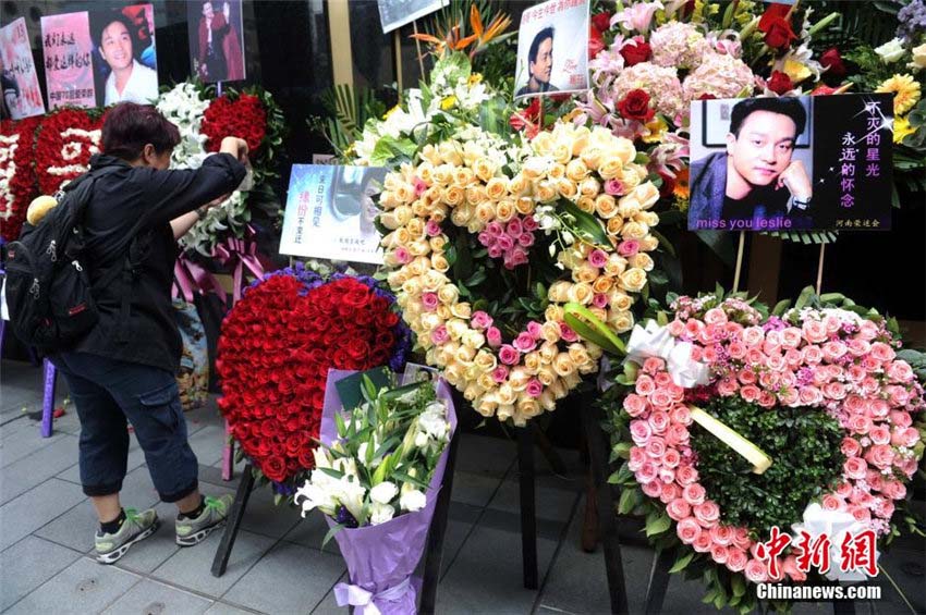 張國(guó)栄(レスリー?チャン)の歌を愛してやまないファンたちが3月31日、香港地區(qū)マンダリンオリエンタルホテルの外で獻(xiàn)花を行い、故人を偲んだ。今年4月1日は、香港地區(qū)の大スターでありみんなの兄貴と慕われた張國(guó)栄の死去から13年目の命日にあたる。各地のファンたちが毎年この日に思い思いの形で哀悼の念を捧げている。中國(guó)新聞網(wǎng)が伝えた。(編集JK)