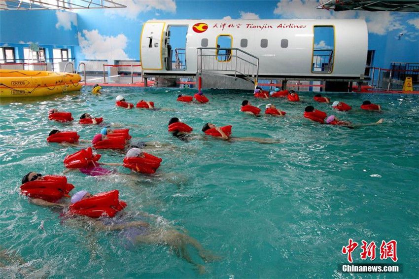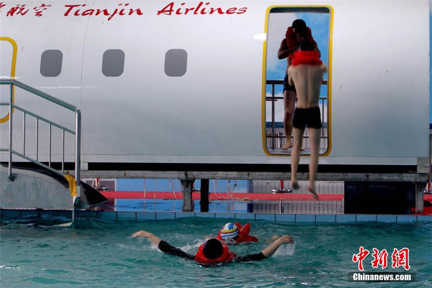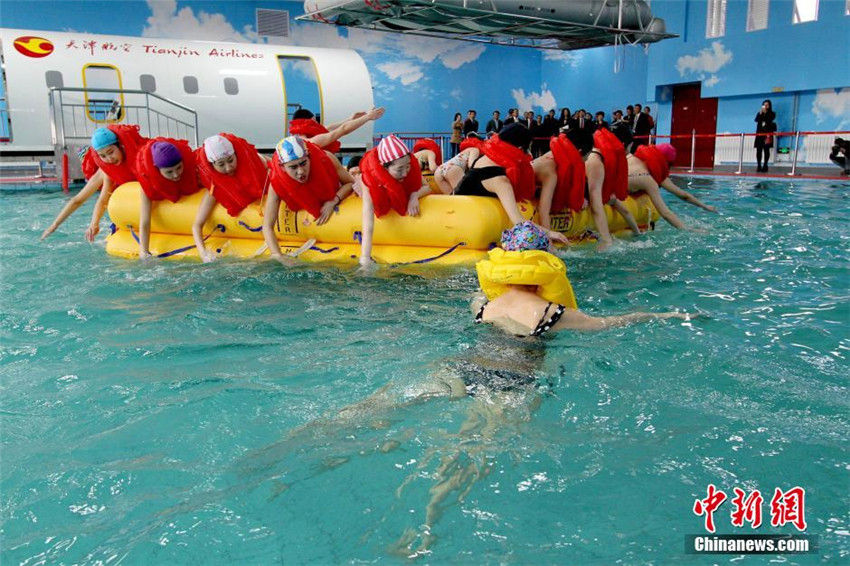天津航空客室乗務(wù)員訓(xùn)練基地発足ならびにエンブラエル客室乗務(wù)員育成資格授與式が3月30日、天津中徳職業(yè)技術(shù)學(xué)院で開催された。筆者は同基地におけるE190型機(jī)の水上救難訓(xùn)練の現(xiàn)場を取材した。E190型機(jī)の水上救難訓(xùn)練用モックアップは航空機(jī)で緊急事態(tài)が発生した際における客室乗務(wù)員の訓(xùn)練を行なうためのもので、飛行機(jī)前方及び翼上脫出口の迅速で的確な開放、マニュアルに則り速やかな乗客脫出誘導(dǎo)、水上におけるスムーズな救難活動(dòng)等の職業(yè)技能における専門訓(xùn)練設(shè)備である。中國新聞網(wǎng)が伝えた。(編集JK)