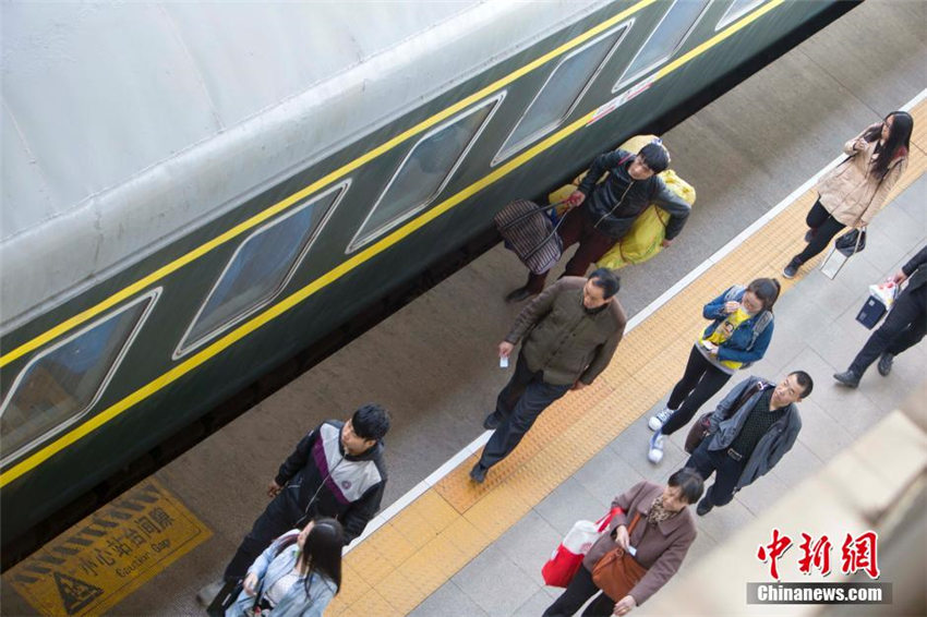 山西省の太原駅で3月31日、利用客が改札口に列を作り乗車の準(zhǔn)備をしている。先祖を祭る中國の伝統(tǒng)的な祭日「清明節(jié)」(今年は4月4日)を目前に控え、中國各地では伝統(tǒng)に則り先祖の墓參りに出かける人々で交通機関の利用客の流れはピークに達した。大勢の他地域出身者は4月1日の帰省のピークを避けるために、いち早く帰省の列車に乗った。中國新聞網(wǎng)が伝えた。(編集JK)