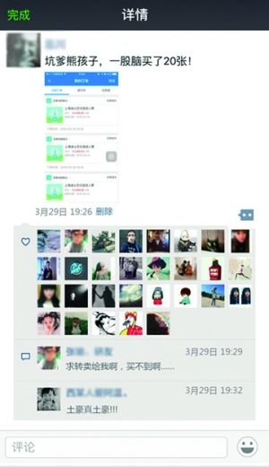 先日、正式に販売を開始した上海ディズニーランドの入場チケットだが、初日のチケットは秒?yún)g位で売り切れになった。チケットの入手困難が続く中、上海市の鄭さんはSNSのモーメンツで入場券20枚の予約リストを投稿した。もっと驚くのが、このチケットを気前よく予約したのは何と鄭さんの7歳の息子だ。「クラスメイト全員をディズニーランドに招待する」と言い放つこの子供に対して、ネットユーザーは次々に、「ちびっ子土豪(金遣いが荒く品のない金持ち)、私と友達(dá)になってください!」とコメントしている。北京晨報(bào)が伝えた。
