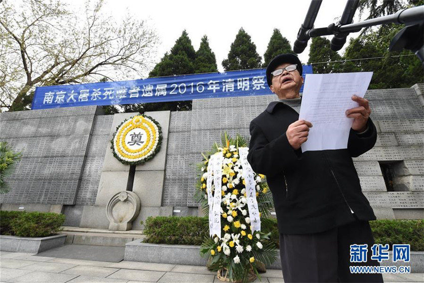南京大虐殺の生存者並びに犠牲者遺族の一部が4月4日に集まり、中國(guó)侵略日本軍南京大虐殺遭難同胞記念館(江蘇省南京市)內(nèi)にある犠牲者の氏名を刻んだ壁の前で「清明祭」の式典を行ない、日本軍に殺害された親族を追悼した。追悼式典には日本人、抗日元兵士の代表等がともに參加した。新華網(wǎng)が伝えた。(編集JK)