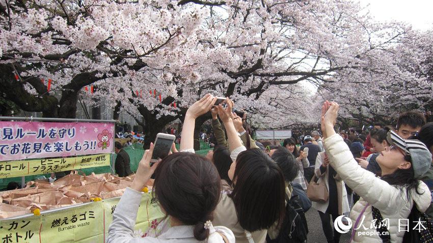 毎年3月から5月にかけて、日本列島の南から北へと桜が順次開花し、各地の人々が挙って花見を楽しむが、これは日本の獨(dú)自の風(fēng)物詩となっている。関東地方でも近日桜が満開となり、東京各地の著名な桜スポットに國內(nèi)外の花見客が集い人の山と化した。人民網(wǎng)が伝えた。