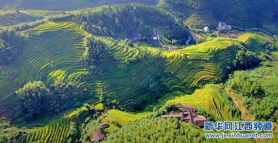 「上堡棚田」は、江西省崇義県西部にある斉雲(yún)山自然保護(hù)區(qū)內(nèi)の上堡景勝地に位置し、広西チワン族自治區(qū)竜勝棚田、雲(yún)南省元陽(yáng)棚田に継ぐ中國(guó)の「三大棚田奇観」の一つと稱される。山の形に沿って作られた棚田が延々と続き、村が星のように散在する。「上堡棚田」は、客家の人々が長(zhǎng)期にわたって大自然の中で生き、発展を求めてきた歴史的証拠だ。