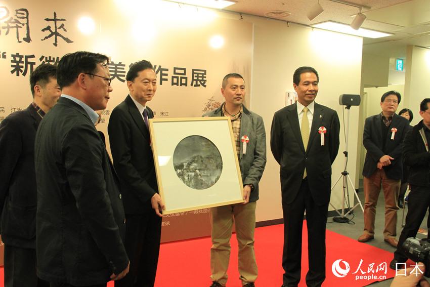 鳩山元首相は開幕式の挨拶の中でまず安徽省のすばらしい風(fēng)景に觸れ、かねてより安徽省の黃山を訪れ、自分の目で黃山の絶景を見てみたいと思っていると語(yǔ)った。また「安徽省の美しい自然が蕓術(shù)家たちに多くのインスピレーションを與え、優(yōu)秀な蕓術(shù)作品を創(chuàng)作するのに役立っているのだろう。日本の人々がこれらの作品を通じて、中國(guó)への理解を深め、両國(guó)の交流を促進(jìn)し、中日関係がより一層改善することを望んでいる」と挨拶した。