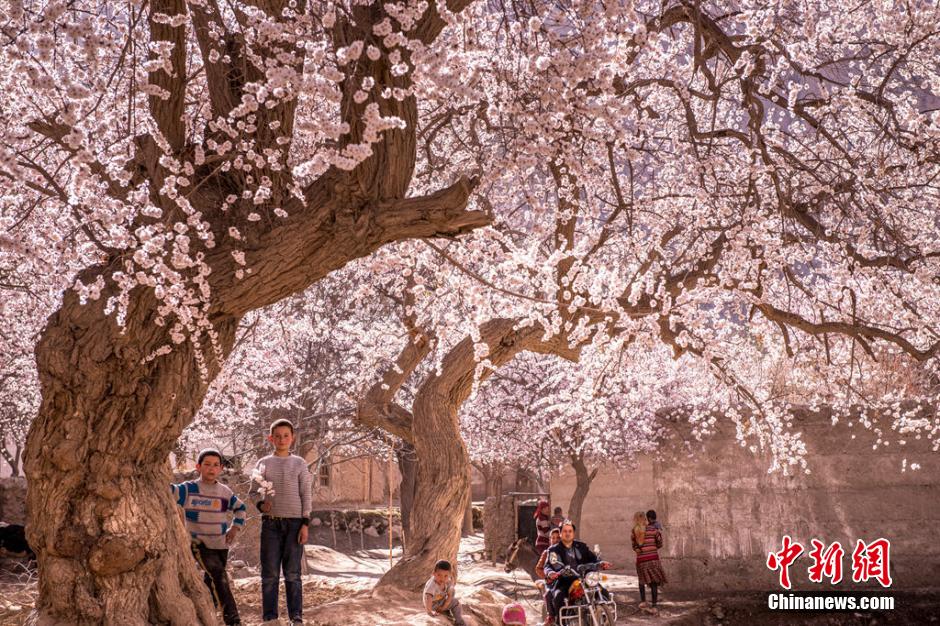 パミール高原の深奧部に位置する新疆維吾爾(ウイグル)自治區(qū)塔什庫爾干塔吉克自治県大同郷では、杏の花が満開だ。ピンク色の花が雲(yún)のように辺りを包み込み、青い空や白い雲(yún)、流れる川にかかる小橋に照り映えて、その中にいると夢か幻かといった感覚に襲われる。陶淵明の桃源郷さながらの世界に迷い込んだかのようだ。大同郷はパミール高原の奧地にあり、平均標(biāo)高は約2800メートル。昔から「この世の仙境‐‐杏の花の村」と呼ばれており、塔什庫爾干県の中心地からは約180キロメートルの距離がある。中國新聞網(wǎng)が伝えた。(編集KS)