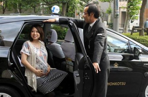 今年初め、日本各地のタクシー會(huì)社が妊婦を病院に運(yùn)ぶという「陣痛タクシー」サービスを開始した。このタイプのタクシードライバーは普通救命講習(xí)を受講し、修了証を交付されている。妊婦はタクシー會(huì)社に住所、分娩する病院、出産予定日等の情報(bào)を登録しておくと、陣痛が始まって、タクシー會(huì)社に電話すればすぐに配車してもらえる。このタイプのタクシーは広々とした車體タイプを採(cǎi)用しているだけでなく、妊婦のために大きめのバスタオルや、防水シート、ゴム手袋等も配備されている。またこのタイプのタクシーは通常のタクシー料金のほかに迎車料金(410円)を負(fù)擔(dān)するだけで利用できる。