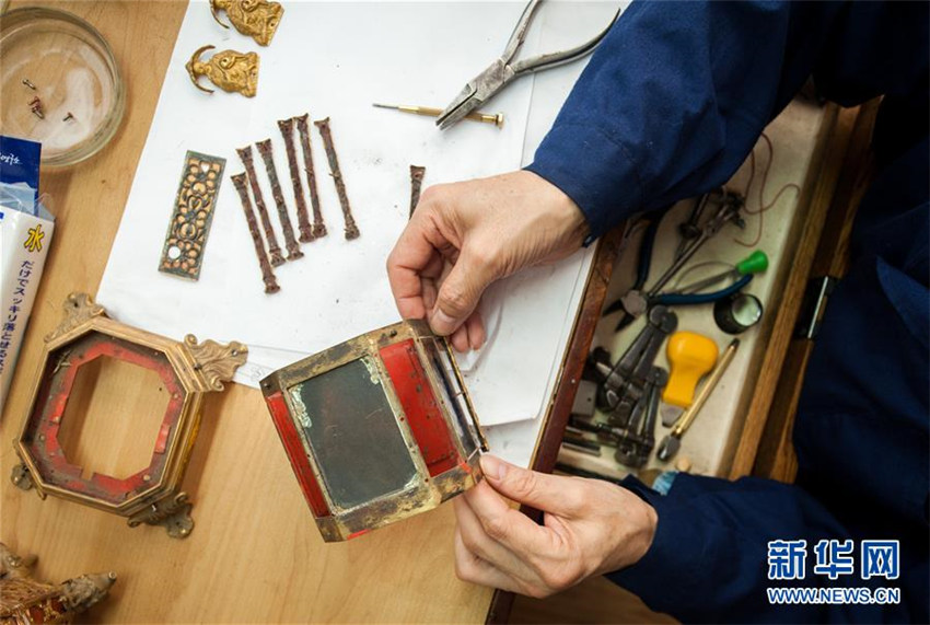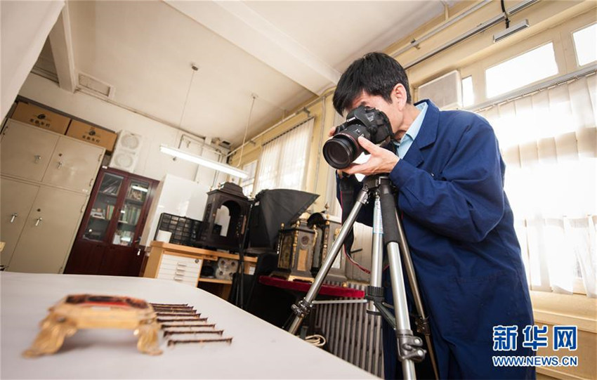 王津師匠(55)は國家級無形文化遺産古代時計修理技術の3代目伝承者で、故宮での仕事を始めて39年になる。毎朝8時から夕方5時まで1日じゅう事務所に座り、長年にわたりひたすら文化財に向き合い続けてきた。修理が必要な時計が運び込まれるとまず寫真に記録し、修復プランを立て、分解、洗浄、復元、組立、最終調整を行なう必要があり、正常に作動することを確認するとようやく倉庫に保管される。新華網が伝えた。