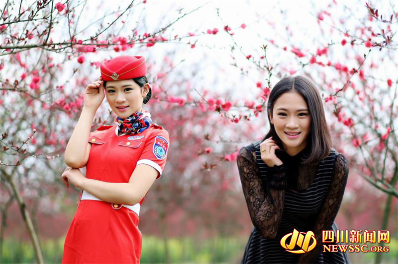 成都東星航空専修學(xué)院は、微博(ウェイボー)の公式アカウントに、スチュワーデス約10人の「制服姿VS普段著の姿」の畫像をアップした。畫像を見ると、スチュワーデスらが実習(xí)用のキャビンや菜の花畑、桃の木の下などで撮影。さまざまな服裝でその美しさを披露している。(編集KN)
