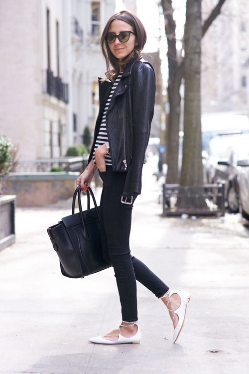 すっきりしたポインテッドトゥで、レースアップ仕様のバレエシューズを履くと、足が長(zhǎng)く見えるだけでなくバレリーナのような優(yōu)雅な足元を手に入れることができる。オシャレな有名ブロガーのバレエシューズのコーディネートを以下に紹介する。(編集KN)