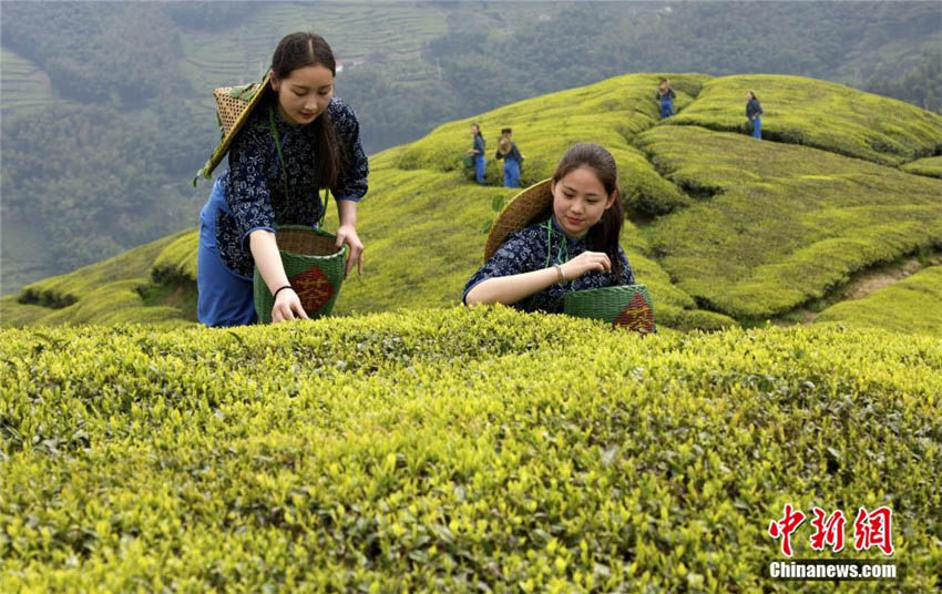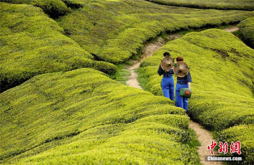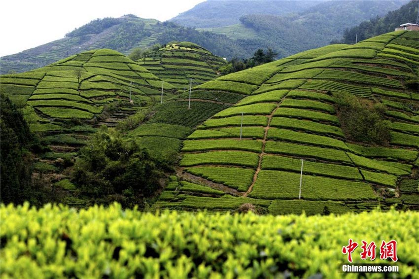 気溫が徐々に上昇するとともに4月は茶葉の摘み取り最盛期に入る。4月13日、浙江省嵊州市通源郷は茶葉を煎ったり、點てた茶の試飲を行なったり、茶畑を観光したり、詩や絵を製作したりなどの文化活動を行なうことで、茶文明を伝承し、茶文化を伝えている。また現(xiàn)地の美しい茶摘み娘は茶畑の風物詩になっている。中國新聞網(wǎng)が伝えた。(編集JK)