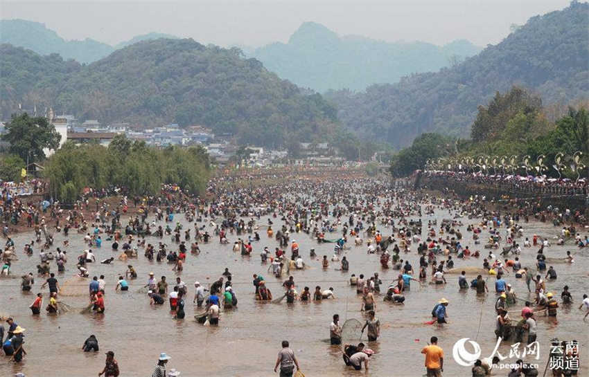 「第13回中國(guó)?孟連娜允神魚(yú)節(jié)」が4月10日から13日にかけて雲(yún)南省プーアル(普洱)市孟連県で開(kāi)催された。期間中、「一萬(wàn)人の魚(yú)捕り」イベントで盛り上がり、大勢(shì)の人が魚(yú)を捕えようと勢(shì)いよく南壘河に入るとたちまち川岸の上から下まで歓聲が上がり、大勢(shì)の人々が勢(shì)いよく跳ねる魚(yú)を楽しんでいた。人民網(wǎng)が伝えた。(編集JK)