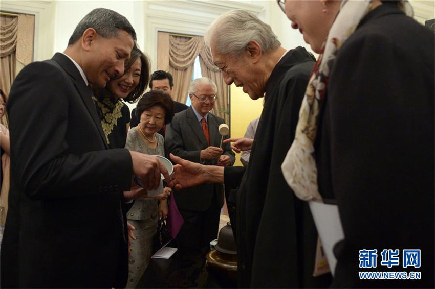 日本の茶道裏千家の大宗匠?千玄室氏が4月14日、シンガポール大統(tǒng)領(lǐng)官邸で日本の茶道のデモンストレーションを行なった。同日、同國(guó)のトニー?タン?ケン?ヤム大統(tǒng)領(lǐng)夫妻とビビアン?バラクリシュナン外相夫妻らゲストのために日本の茶道の作法を披露した。新華網(wǎng)が伝えた。(編集JK)