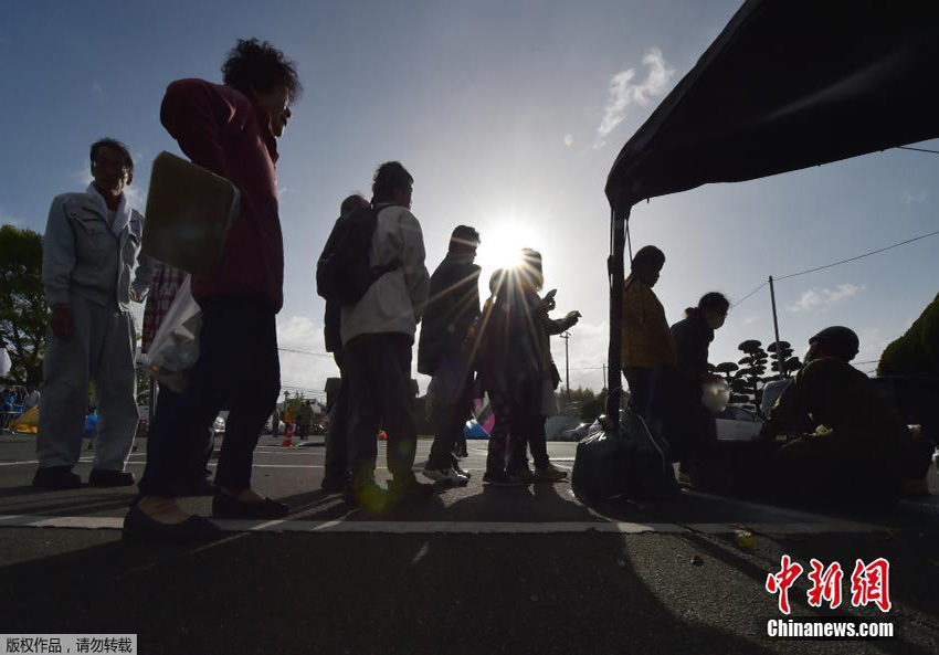 日本の九州に位置する熊本県南阿蘇市は4月16日、地震により発生した地滑りと阿蘇大橋の崩落により救援活動(dòng)が難航している。日本の気象庁は現(xiàn)地時(shí)間16日午前1時(shí)25分に同県熊本市で発生したマグニチュード7.3の地震は震源の深さが約12キロメートル、このところ発生している一連の地震の本震であると発表した?,F(xiàn)地時(shí)間の4月16日、同県益城町で現(xiàn)地の住民たちが物資配給センターから食料を受け取るために行列を作っている。中國(guó)新聞網(wǎng)が伝えた。(編集JK)