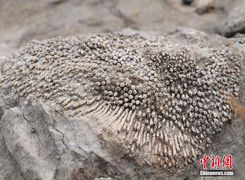 湖南省桂陽県の國土資源局が國土資源調(diào)査の際、現(xiàn)地の舍市村にある2つの石灰?guī)r山頂でそれぞれ太古の化石を発見した?;蠋啢悿浈单螗聪xの2種類だ。エンジニアの陳國彪氏は、「これらの化石はおよそ3億5千年前から1億9千年前の期間、淺い海に化學的に沈殿した石灰?guī)rに屬している。この太古の化石群は數(shù)千平方メートルの範囲に散らばっており、古代生物の化石群の発育は不完全だ」と話す。地表に露出したこれらの古代生物の化石群は同県內(nèi)においてこれまで発見された最大面積の古代化石群で、石の中の古代生物の化石群が切斷面の形に現(xiàn)れ、當時の生物環(huán)境を生き生きとして伝えており、非常に興味深い。中國新聞網(wǎng)が伝えた。(編集JK)