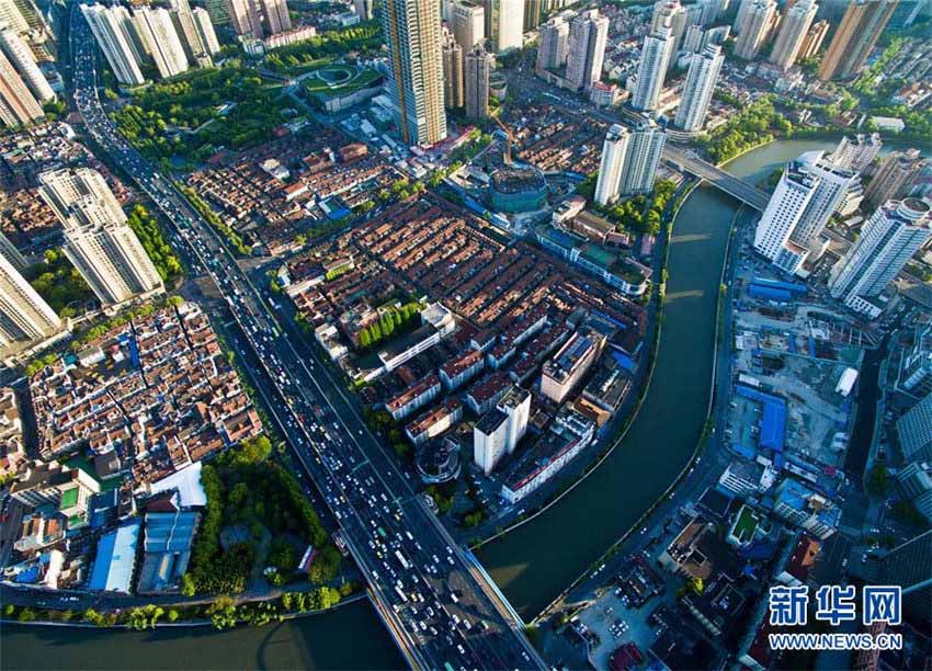 上海市新靜安區(qū)の蘇河灣の両岸に広がる都市風(fēng)景を4月19日に空撮した。上海市閘北區(qū)、靜安區(qū)における合併によって設(shè)立された新靜安區(qū)に伴い、蘇河灣エリアの両岸に「蘇州河を跨いだ」合併を?qū)g現(xiàn)し、上海の現(xiàn)在と過去を融合させ獨(dú)特な雰囲気をたたえた新靜安蘇河灣エリアは上海の新たな文化の「ランドマーク」に姿を変えた。新華網(wǎng)が伝えた。(編集JK)