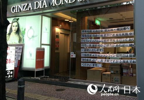 熊本市への救援物資の保管?運搬のボランティアを行う福岡市內(nèi)のショップ。