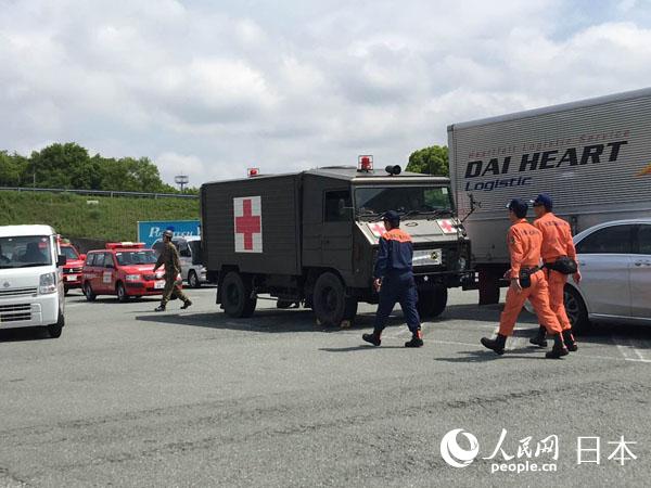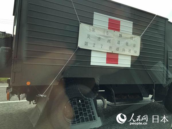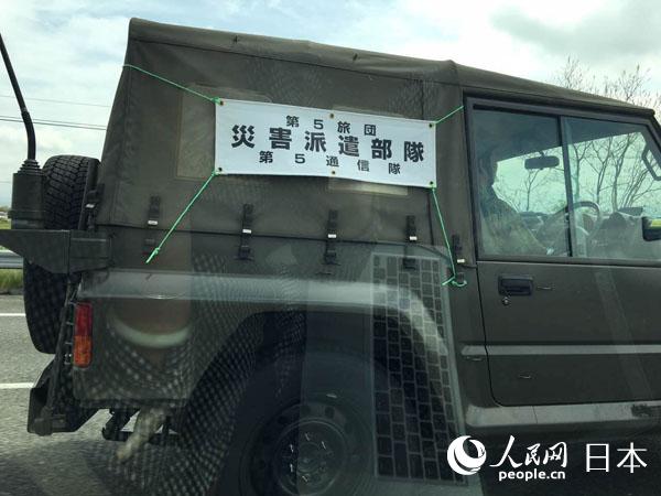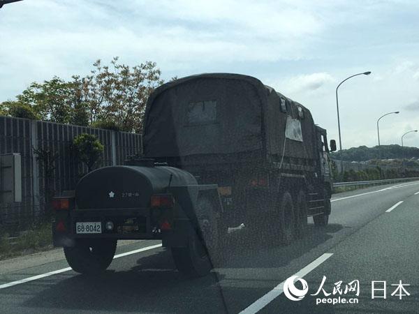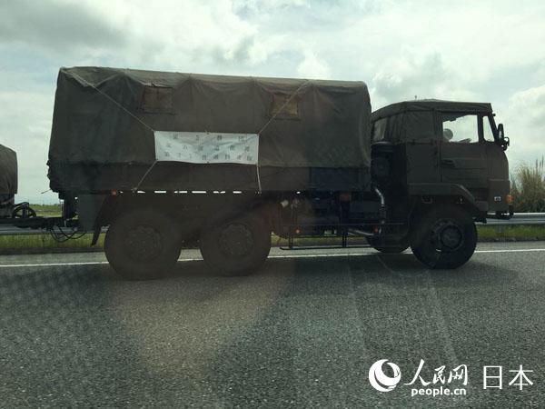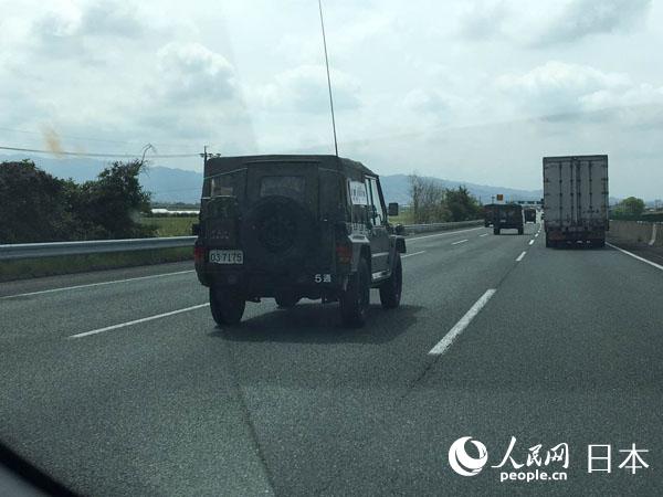 人民網(wǎng)記者が4月22日、日本の福岡県から車を走らせ熊本の被災(zāi)地へと取材に向かう途中、九州高速道路で同じく被災(zāi)地に向かう陸上自衛(wèi)隊第5旅団の災(zāi)害派遣部隊の車列に遭遇した。見たところ大型トラック1臺、小型トラック3臺、救急車3臺で構(gòu)成されている。人民網(wǎng)が伝えた。(編集JK)