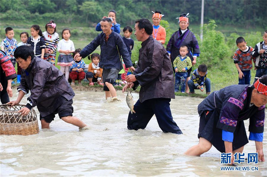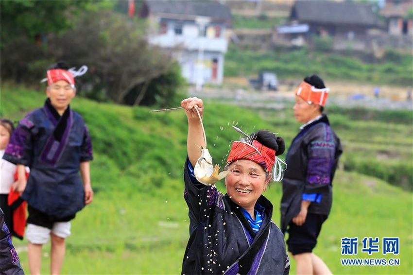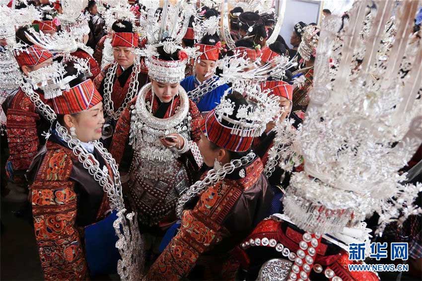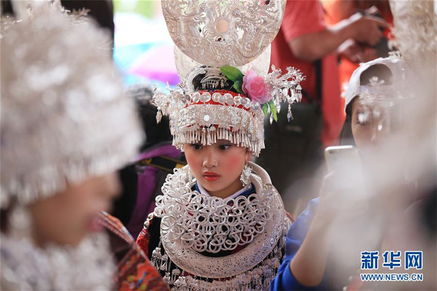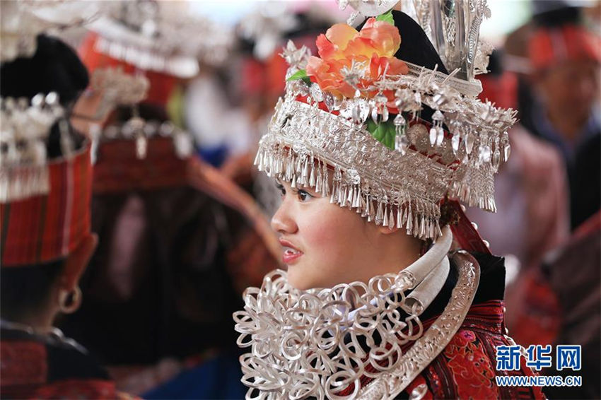 盛裝をしたミャオ族の若い女性たちが4月20日、「姉妹節(jié)」の行事に參加している。この日、貴州省黔東南ミャオ族トン族自治州臺江県のミャオ族の人々が「姉妹節(jié)」を祝っている。姉妹節(jié)とは同自治州臺江県に住むミャオ族の伝統(tǒng)祭日で、2006年に第1期國家無形文化遺産リストに登録された。姉妹節(jié)の期間は「ミャオ族盛裝パレード」、「同年生まれ同士で田んぼに入り魚摑み」などミャオ族の一連の伝統(tǒng)行事が開催される予定だ。(編集JK)