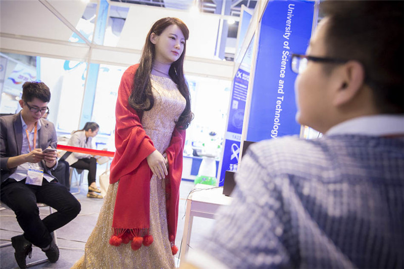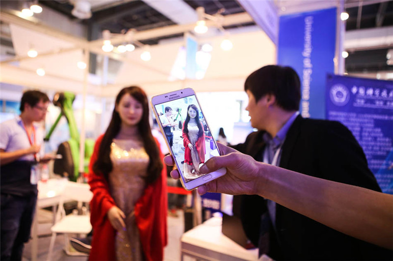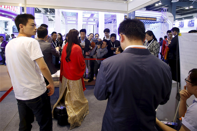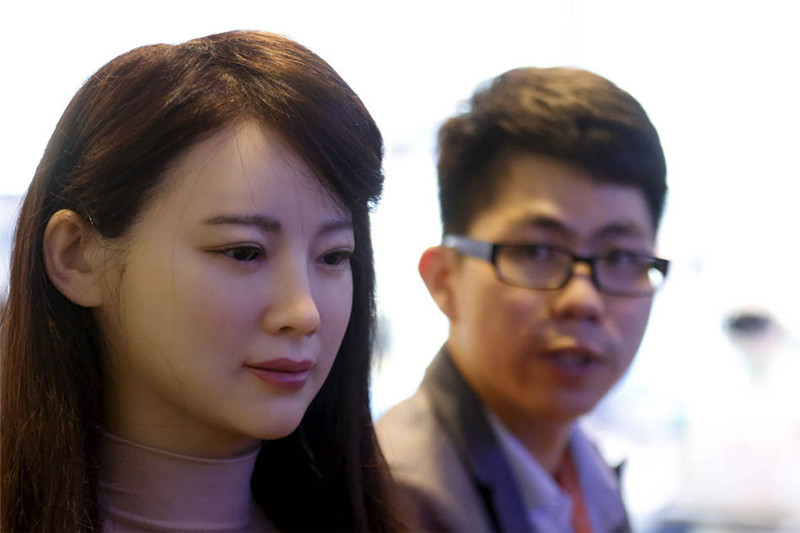 佳佳は來場者にウインクし、頷いた。スタッフによると、彼女は自動モードで動いており、何を話しどのように動くのかは気分次第で、疲れて、動きたくなくなるときもあるという。開発者によると、中國科學技術大學ロボット開発チームは佳佳のルックスを決めるため、全校で投票を行った。同校の5人の女子大生が、佳佳の顔のモデルになった。女子大生の顔を基礎とし、さらに佳佳の改良を行い、全體的なイメージが決まったという。(編集YF)