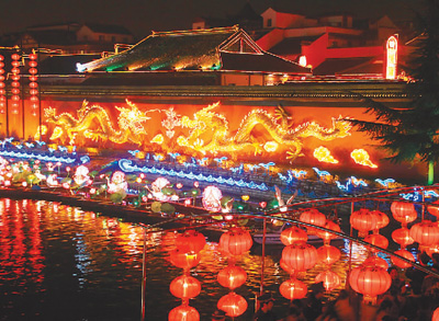秦淮燈會は悠久の歴史を誇るのみならず、新年における南京獨特の風景となっている。80年代中ごろから復(fù)活して毎年行われるようになっている。また、かつては夫子廟エリアに集中して開催されていたが、今では秦淮河東西両側(cè)の中核地域にまで広がっており、秦淮燈もかつて手作りの裱だけにたよっていたのが、今では近代的大型景観燈に発展し、南京の切り紙、空竹、縄結(jié)、彫刻といった複數(shù)の民間蕓術(shù)を融合し、南京の伝統(tǒng)的風習の中でも獨自の文化的光景となっている。
