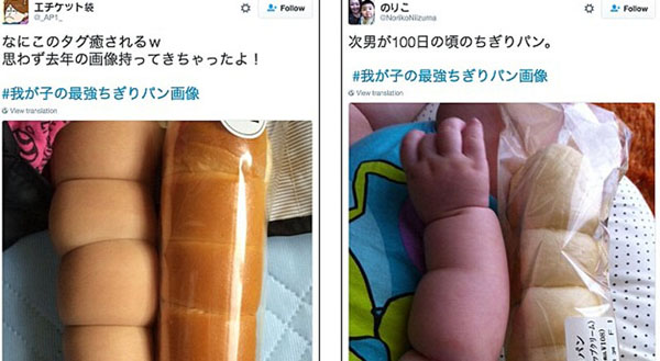 「どれがパンで、どれが腕?見分けがつかない!」。日本のツイッターユーザーがネットに赤ちゃんとパンの比較寫真を投稿すると、新たなブームが起こり始めた。よく見てみるとパンの表面の區(qū)切りと赤ちゃんの腕の皺が本當によく似ている。