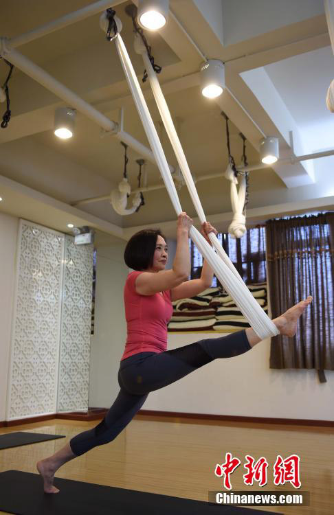 重慶の高齢女性楊富瓊さん(62)が4月25日午前、ヨガスタジオで難度が高いヨガのポーズを練習(xí)している最中だ。楊さんはヨガを始めて1年経たないうちに倒立、開腳、ハンモックを利用した空中での高度なポーズまで全て習(xí)得し、団地內(nèi)の近所の人からは親しみを込めて「ヨガ婆ちゃん」と呼ばれている。楊さんは取材に対し、「ヨガは體の調(diào)子を整えるだけでなく美容にもよく、肌をきめ細かくさせる働きがある。練習(xí)を始めたばかりのころは困難に直面したが、地道に頑張り続けることで自分の身體が柔軟になった」と話す。中國新聞網(wǎng)が伝えた。(編集JK)