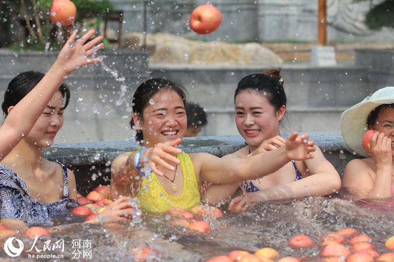 28日、メーデー(5月1日)連休に備え、河南省洛陽市にある溫泉観光地の各溫泉は、リンゴ?レモン?オレンジ?キュウリなどの果物で満たされた。観光地の従業(yè)員は、「溫泉にフルーツを入れて入浴することは、今のところ、日本や韓國での流行にとどまっているが、フルーツには、肌を美しくする?皮膚の新陳代謝を促す?疲労を取り除く?美白と潤いを保つなどの効果がある」と紹介した。環(huán)球網が報じた。