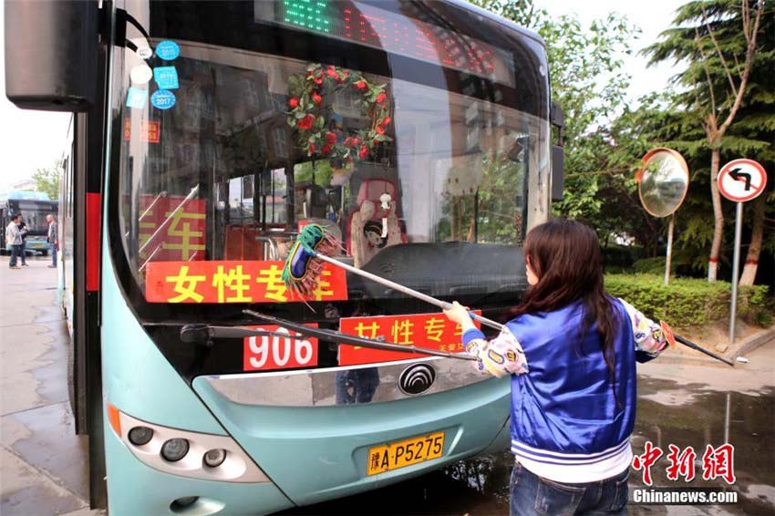 28日の夕方のラッシュ時(shí)間帯、河南省鄭州市で、女性運(yùn)転手の高婕さんが運(yùn)転する「女性専用路線バス」が、バス會社から出発した。中國新聞網(wǎng)が報(bào)じた。