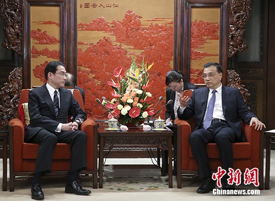 李総理は「長期的に健全で安定した中日関係の発展は、両國および両國民の根本的利益に合致し、地域と世界の安定と繁栄に寄與する。ここ數(shù)年中日関係は回り道をしたが、現(xiàn)在両國関係は改善基調を呈している。だがその基礎は依然脆弱であり、雙方がしかるべき責任感によって中日関係の正しい方向性を把握する必要がある。中國側は『歴史を鑑として未來に向かう』精神で日本側と共に努力し、政治的相互信頼を強化し、両國関係を再び正常な発展の道に戻すことを望んでいる」と表明。