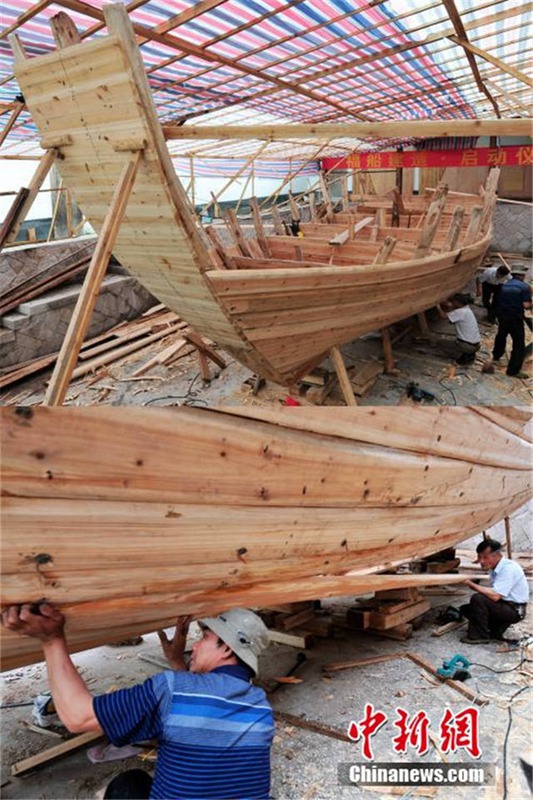 2013年5月7日、福州市にある中國(guó)十大歴史文化名街三坊七巷福船文化會(huì)館で、福建省福鼎市からやって來(lái)た鄭さんと65歳になるベテラン船大工の黃さんが、最後の一隻の加工を行った。福建省の福船、広船、沙船、鳥船は中國(guó)古代四大船型と呼ばれている。工業(yè)化が加速するにつれて、現(xiàn)在建造されている船舶の大部分には、船殻(鋼材を用いた外殻)が用いられており、木材を使った船はほとんど市場(chǎng)から姿を消した。そのうえ、造船は極めて時(shí)間がかかる作業(yè)で、仕事はかなりキツイため、若い人から敬遠(yuǎn)される傾向にあり、木船の造船は、生存?伝承の両面で存亡の危機(jī)に瀕している。2010年、福船の造船技術(shù)は、ユネスコに「急ぎ保護(hù)を必要とする無(wú)形文化遺産リスト」に組み入れられた。