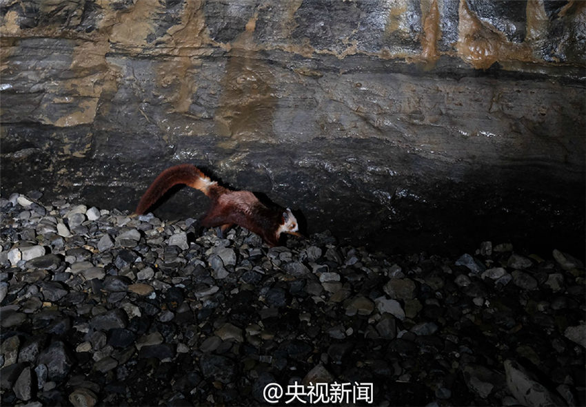 このほど「中國で最も長い洞穴」である雙河洞(貴州省遵義市)を科學(xué)調(diào)査中の中國?フランス連合探検隊(duì)はある可愛い小動物「フライングキャット」に遭遇。ミミゲモモンガ(學(xué)名: Trogopterus xanthipes)というこの小動物は両手両足と腹部の皮を羽のように広げることで、高い場所から飛び降りることができる。中央テレビが5月1日付けで伝えた。寫真出典:中央テレビニュースの公式微博(ウェイボー)より。(編集JK)