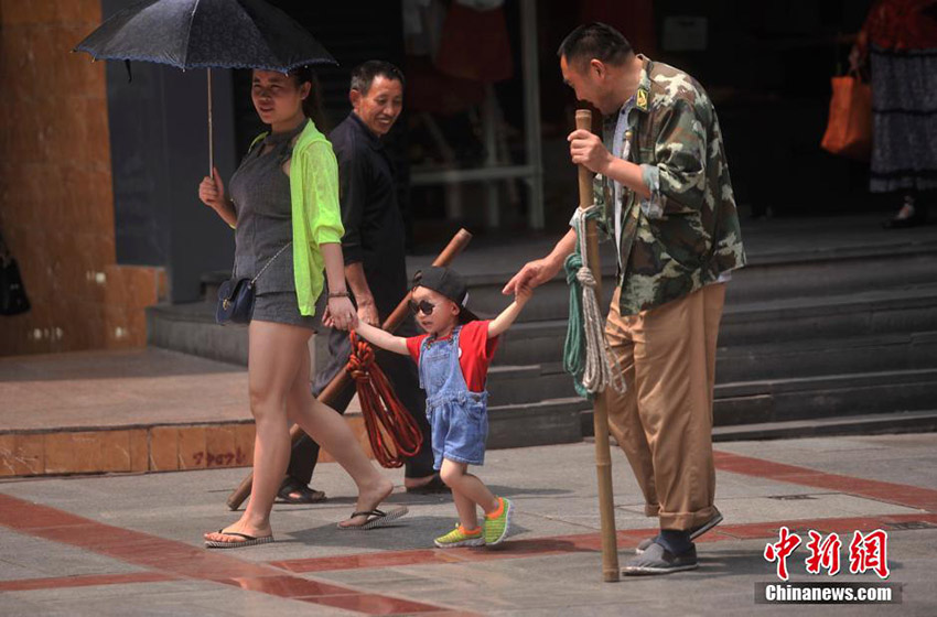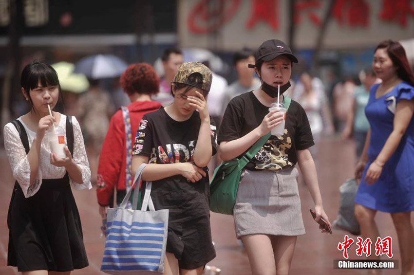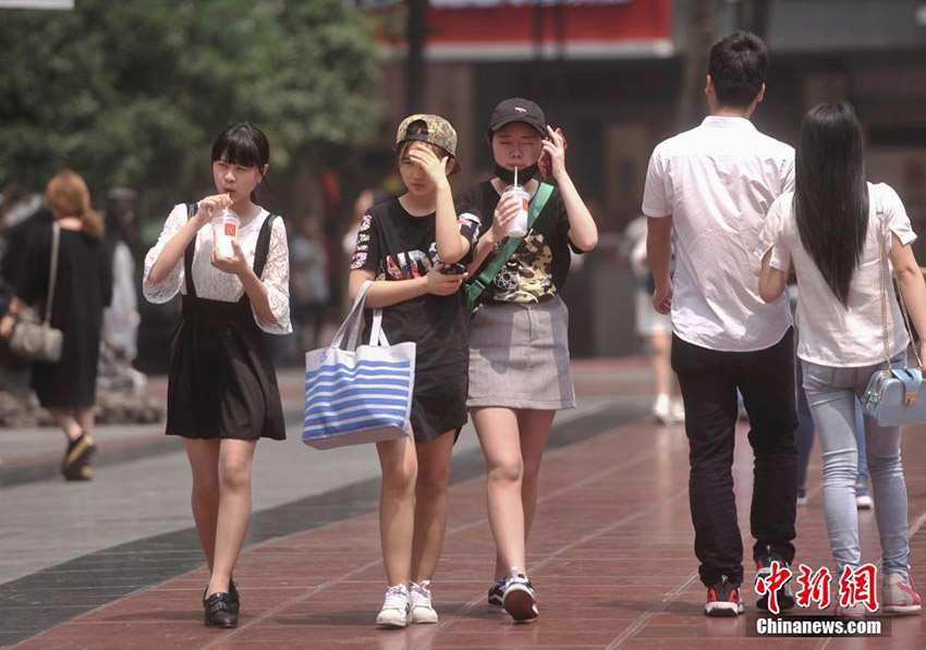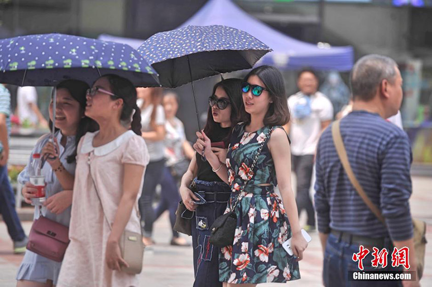 5月3日、重慶市の歩行者天國(guó)を歩く市民の多くは薄著だった。この日重慶の外気溫は30度を超え、一足先に「灼熱」モードに突入した。中國(guó)新聞網(wǎng)が伝えた。(編集JK)