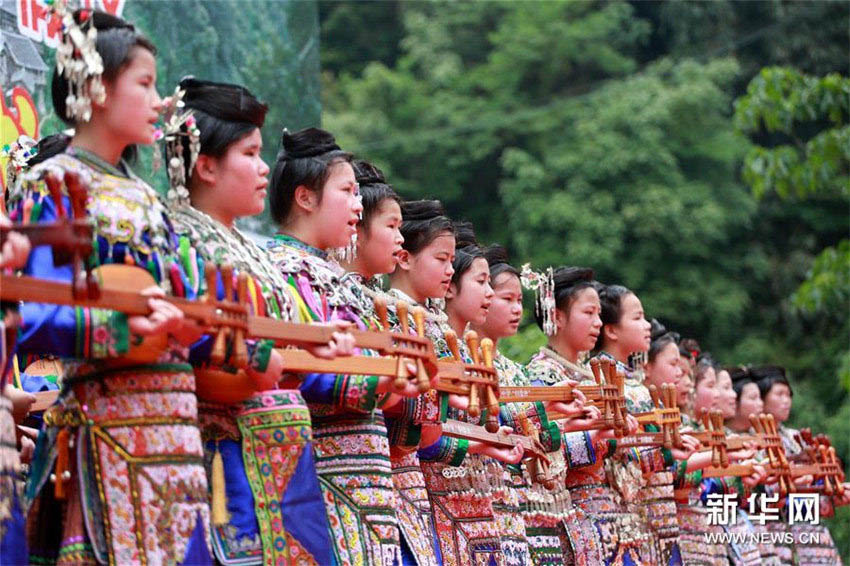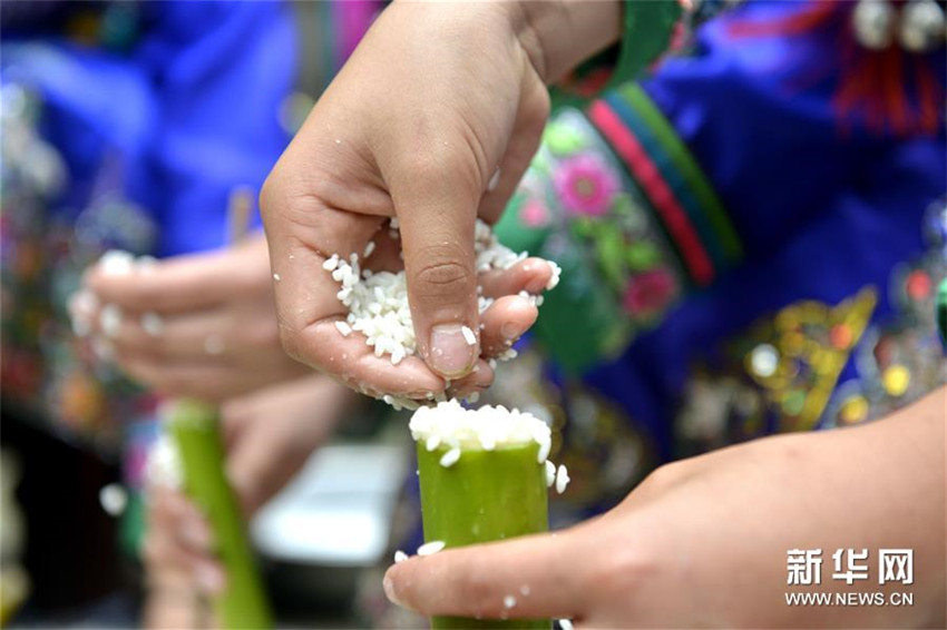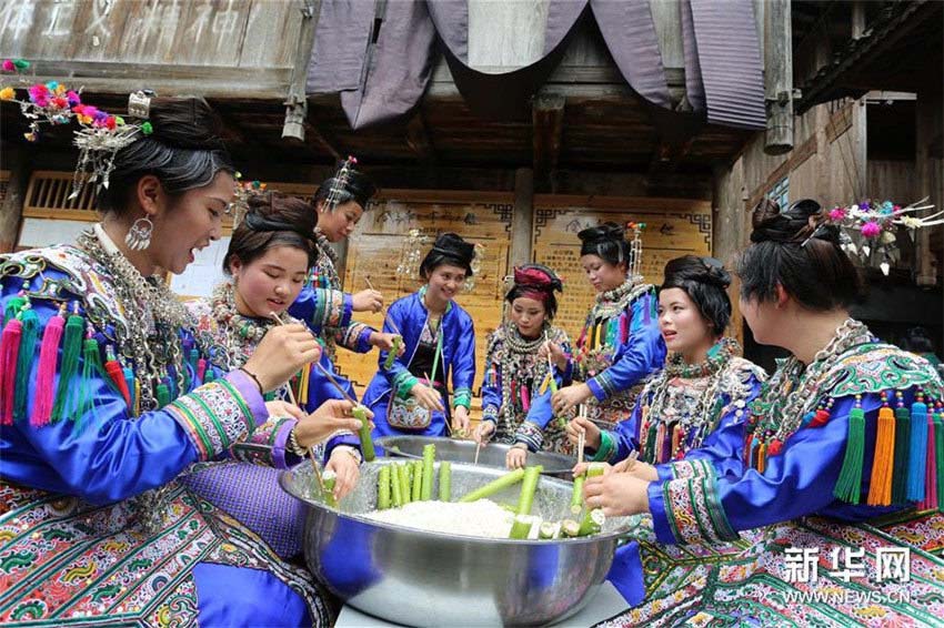 貴州省榕江県のトン(トンはにんべんに同)族が暮らす村で3日、竹に入れたもち米を食べる伝統的な祭り「竹米節(jié)」が開かれ、古くから農耕を中心に暮らしてきたトン族の伝統あふれる一日となった。新華社が報じた。