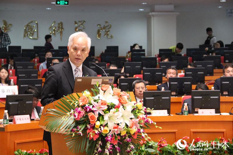 丁學(xué)長はまず、半世紀(jì)にわたる中日両國の教育交流を振り返り、中國科學(xué)院の郭沫若?元院長の詩を引用し、「一衣帯水?一葦可航(いずれもきわめて近接しているたとえ)」の関係にある中日両國の平和的発展と協(xié)力?交流の重要性を訴えるとともに、「両國の教育界の関係者が積極的な役割を果たし、試練を乗り越え、共に発展し、中日両國の教育と文化交流に新たな活力を注入することを望む」と述べた。