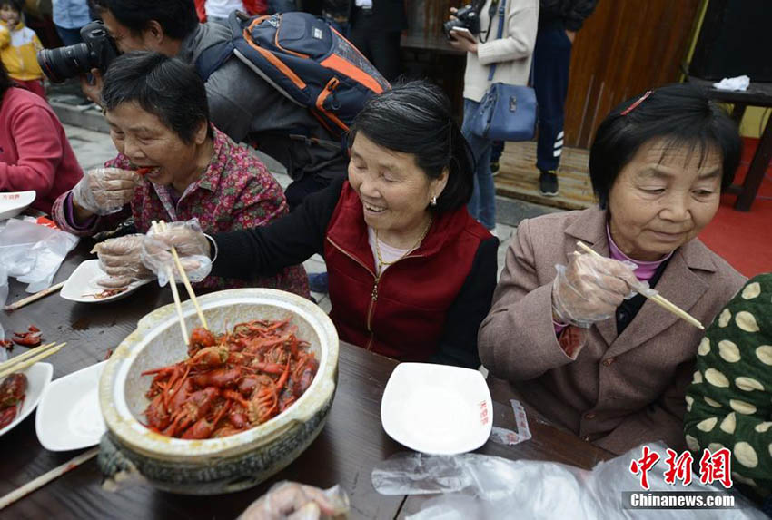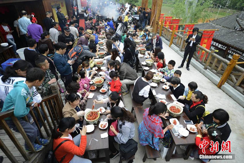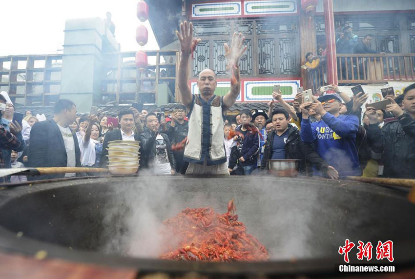 湖南省張家界で5月8日、第1回ザリガニ文化イベントが開催され、ある男性が直徑2メートル近くの大鍋を使ったザリガニを素手で豪快に炒める技を披露し、大勢の観光客の注目を集めた。會場ではコックたちが腕によりをかけて作った美味しいザリガニ料理が100人の観光客に無料で振る舞われた。中國新聞網(wǎng)が伝えた。(編集JK)