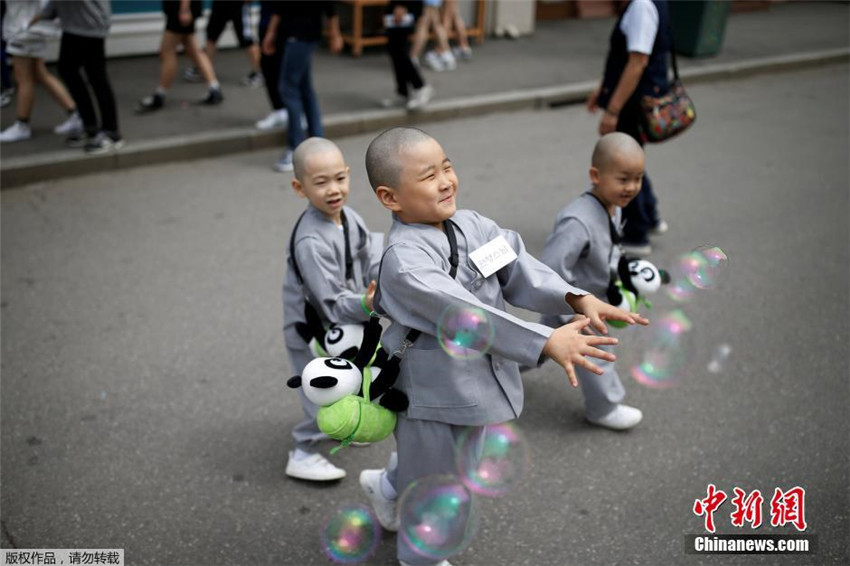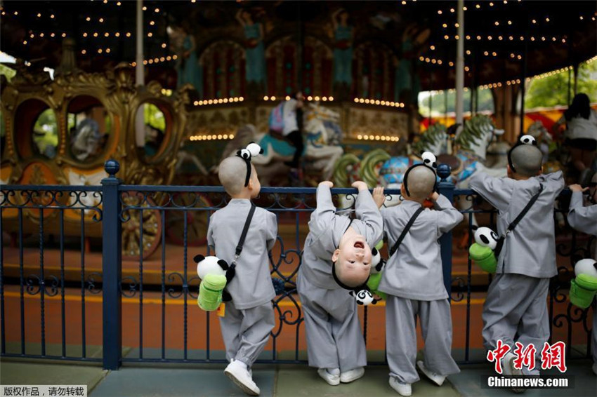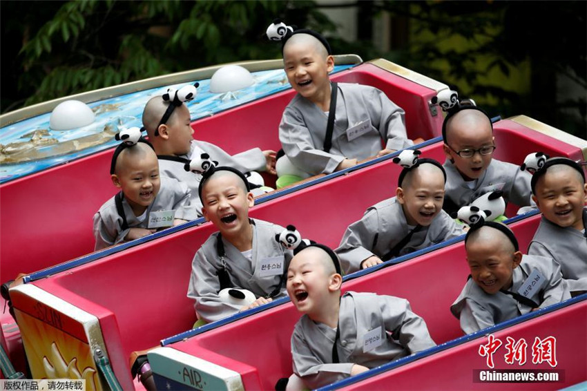 韓國のちびっ子和尚が現(xiàn)地時間5月9日に集団で遊園地に遠(yuǎn)足にでかけた。頭の上にはパンダの飾りをつけ、肩からパンダの水筒をかけて、遊園地中を歩き回る様子は、人々の注目を浴びた。彼らは5月14日に開かれる仏陀の生誕祭を迎えるため、5月2日に剃髪式を終えている。中國新聞網(wǎng)が伝えた。(編集JK)