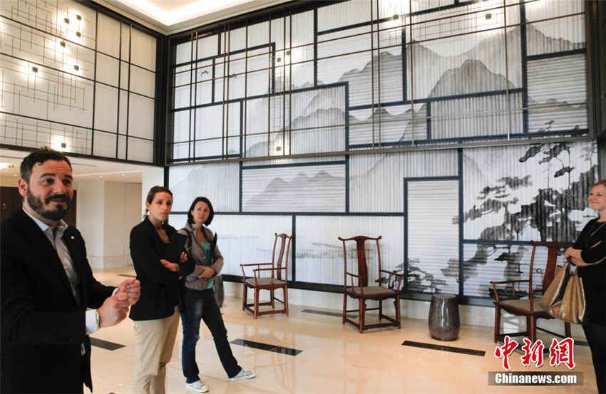 ホテルロビーの壁には中國(guó)の山水畫(huà)が飾られてあり、ひと際目を引いている。ベルギーで初めて「中國(guó)スタイル」をメインとした5つ星ホテルがこのほど首都ブリュッセルに登場(chǎng)、ホテルのマーケティング責(zé)任者であるニコラス?バハゾッティ氏が5月10日、メディア向けにホテルの詳細(xì)について説明した。ブリュッセル?タングラホテルは187室の客室、様々な飲食店、會(huì)議室、エンターテイメント施設(shè)を備え、中國(guó)と西洋の文化を融合させている。中國(guó)新聞網(wǎng)が伝えた。(編集JK)
