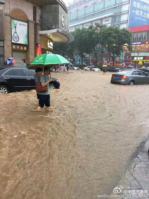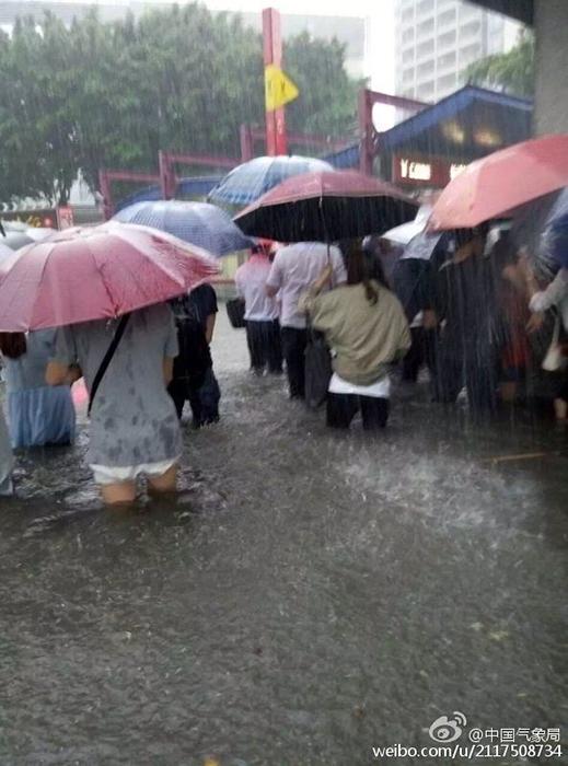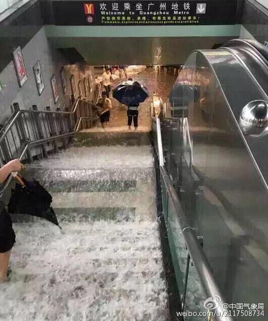 中國気象局公認の微博(ウェイボー)によると、5月10日早朝、広州は2時間で81.4ミリの雨量に達した。市內(nèi)を走る路線バスは浸水し、地下鉄駅は雨水が滝のように流れ込み冠水、通りを歩く人も膝まで水に浸かるという狀況で、多くの地域では交通に影響が生じた。(編集JK)