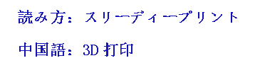 3Dプリントとは、快速成形技術(shù)の一種である。デジタル模型データを土臺として、粉末狀の金屬またはプラスチックなどの固著可能素材を使い、一層ごとに堆積造形して物體を形成する技術(shù)である。