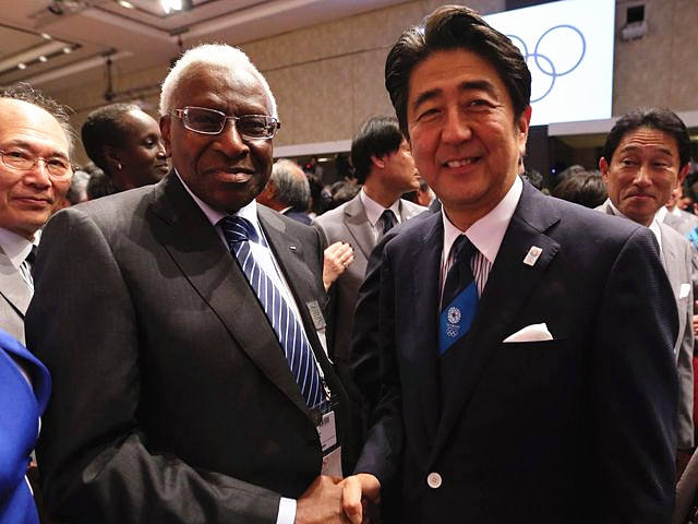 握手を交わす安倍晉三総理(右)とパパマッサタ?ディアク氏