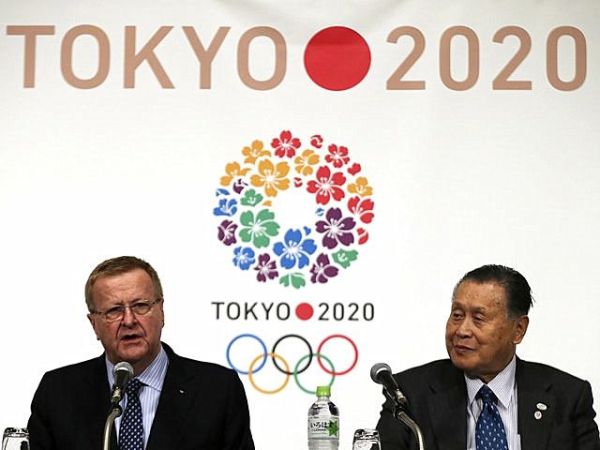 記者會(huì)見に臨む日本オリンピック組織委員會(huì)の森喜朗會(huì)長(右)とIOCのジョン?コーツ副會(huì)長(資料図)