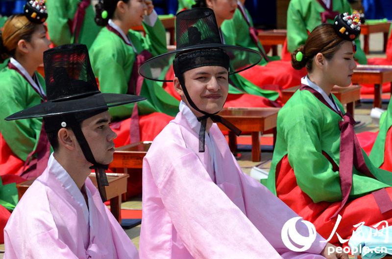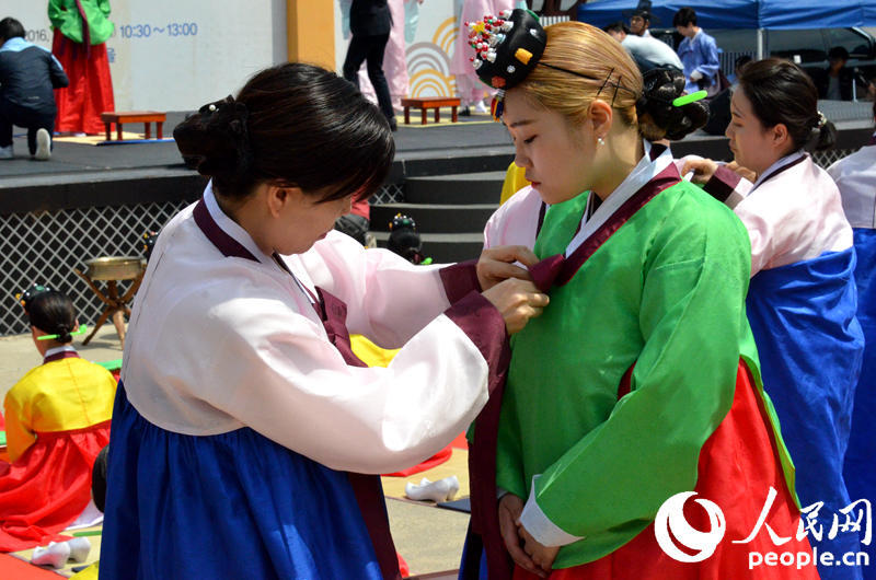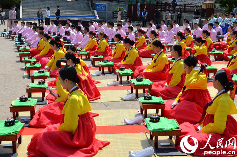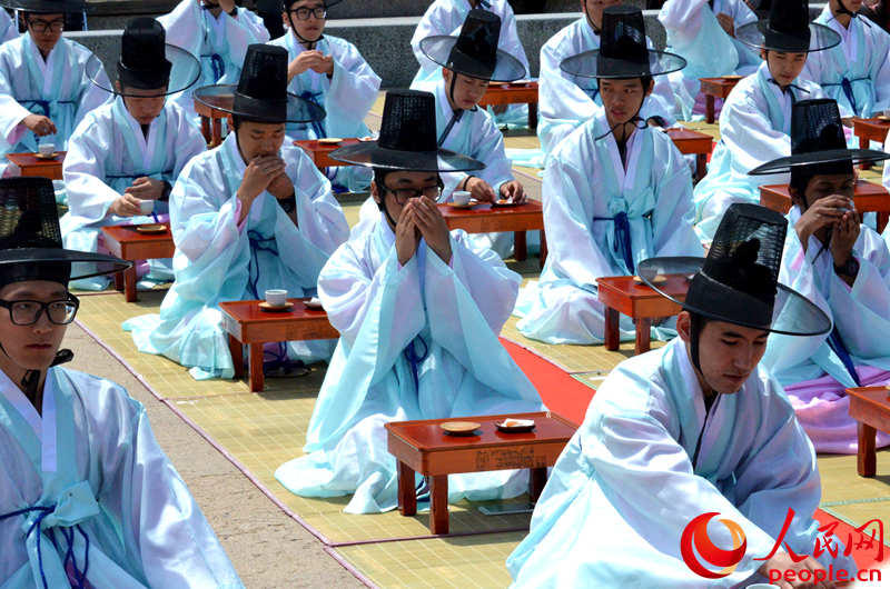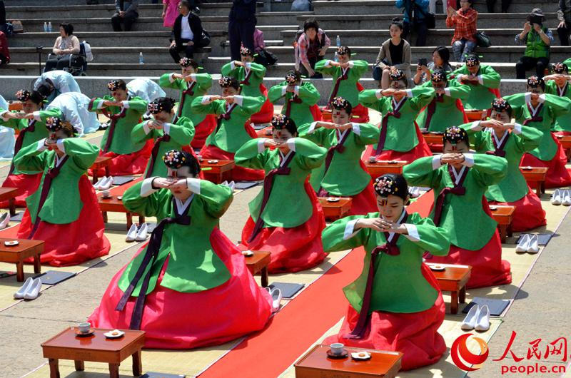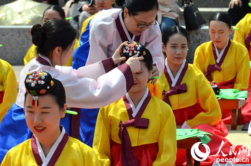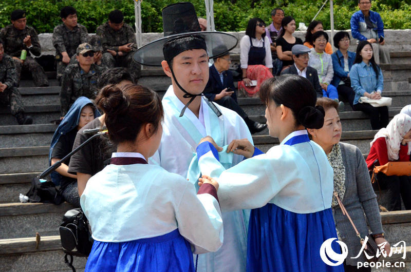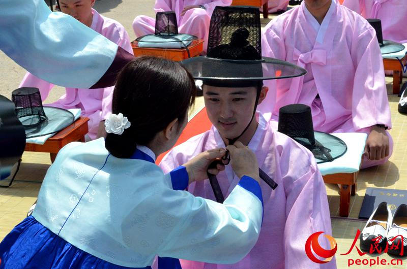 男性は冠を被り、女性は髪を上げ、両親や目上の人に感謝のお辭儀をしている。5月16日午前、韓國ソウル市の南山韓屋村に集まった100人以上の青少年が伝統(tǒng)的な成人式に則り、成人を迎えた。人民網(wǎng)が伝えた。