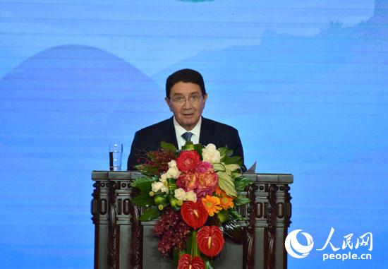 挨拶に立つUNTWOのタレブ?リファイ事務(wù)局長(zhǎng)