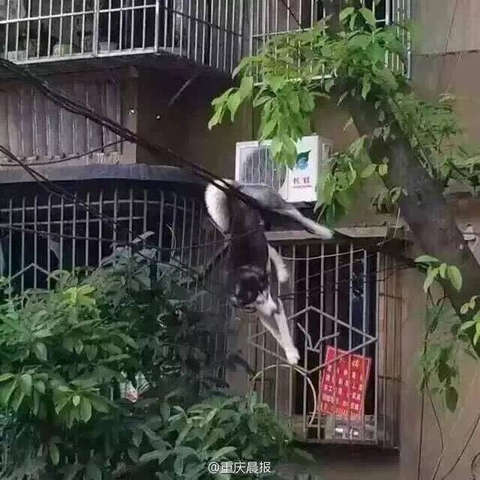 幸運なことに、このハスキーは、ケーブルに引っかかって命拾いした。犬の飼い主と近所の人がシーツを広げてクッションとし、犬を受け止めた。あるネットユーザーは、「ずっとこの畫像を見ていると、可笑しさのあまり開いた口が塞がらない」とコメントした。(編集KM)