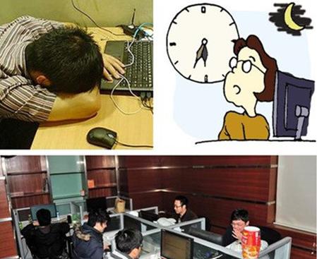 2015年9月に、北京、上海、広州で殘業(yè)をしているホワイトカラー1500人を対象に実施された調査では、回答者の70%以上が便秘や腰痛、肩こり、手足の無力感、精神的疲労、目まい、頭痛など15の癥狀を訴えた。そして、1日3食を規(guī)則正しく食べているとの回答は26%にとどまり、57%が睡眠時間は「7時間以下」と答えた。