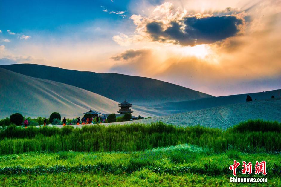 ゴビ砂漠が広がる甘粛省敦煌市は5月21日夜、今年に入って6度目の「恵みの雨」が降った。22日午前になると雨も止み、真っ青に晴れ渡った敦煌の空は絵のように美しい景色が広がっており、大勢(shì)の観光客が訪れていた。甘粛省河西走廊の最西端に位置する古い町?敦煌は、ゴビ砂漠の奧地にあたり例年の降雨量が極めて少ない。中國科學(xué)院寒冷地乾燥地環(huán)境?工學(xué)研究所の研究によると、敦煌地區(qū)は中國で最も乾燥する地域の1つだという?,F(xiàn)地の平均降水量は約39.9ミリメートルだが、蒸発量は2486ミリメートルにも達(dá)し、局地においての年平均降雨量はたった10ミリメートルというところから中國の「極乾燥地域」と稱されている。中國新聞網(wǎng)が伝えた。(編集JK)