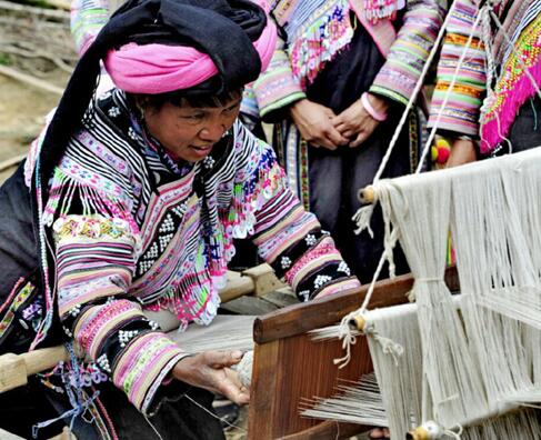 プーアル市瀾滄県富邦カ朗村(カは人偏に上下)は「ラフ族編物の郷」と稱されている。ここで生活しているラフ族の女性は自分で糸を紡ぎ、布を織り、編物で洋服やバッグを作るのが好きだ。手工蕓の技術(shù)を示すと同時(shí)に歴史ある服飾文化を代々受け継いでいる。