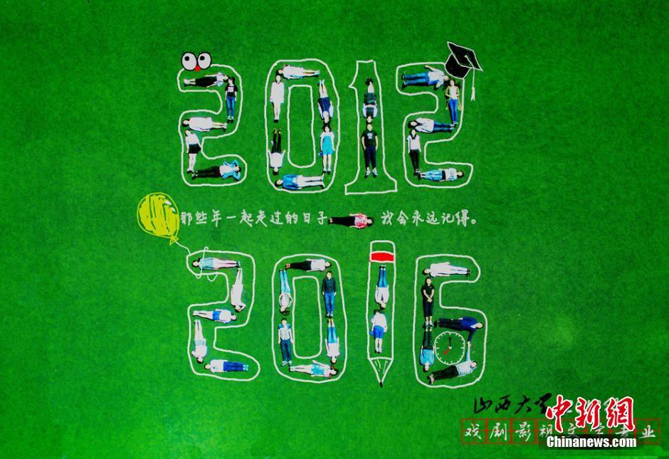 卒業(yè)シーズンを間近に控え、山西大學(山西省太原市)戯劇?映畫?ドラマ?文學學科の學生達が空撮で間もなく終わるキャンパスライフを記念し、各界のネットユーザーから稱賛されている。(加工修正後のアイディア卒業(yè)寫真)寫真は學生提供。(編集JK)