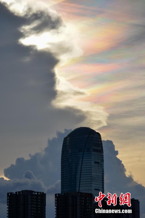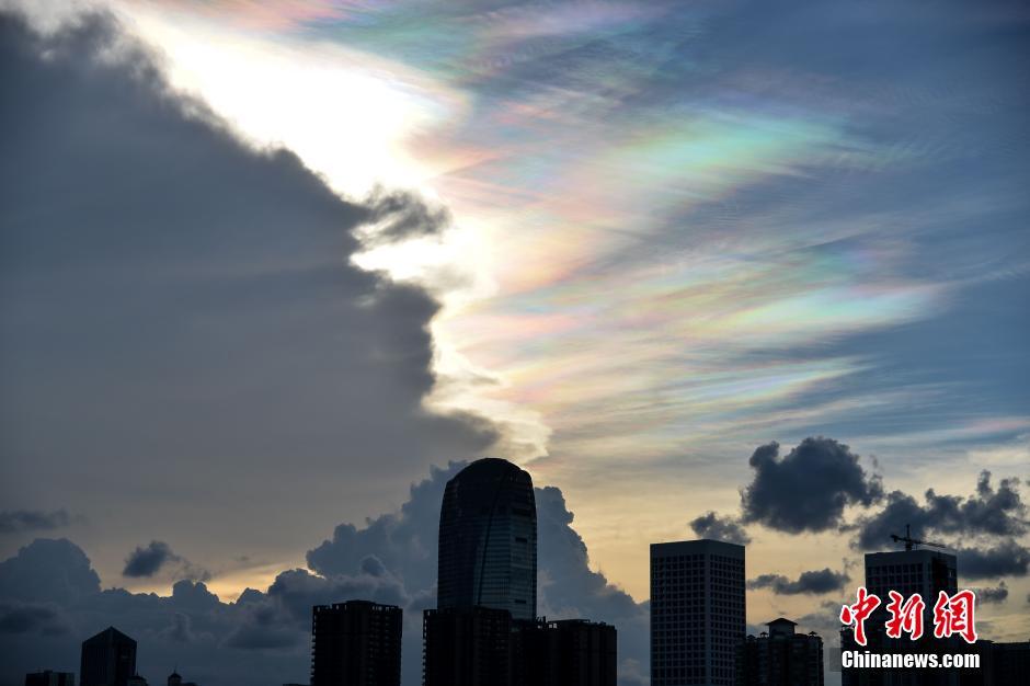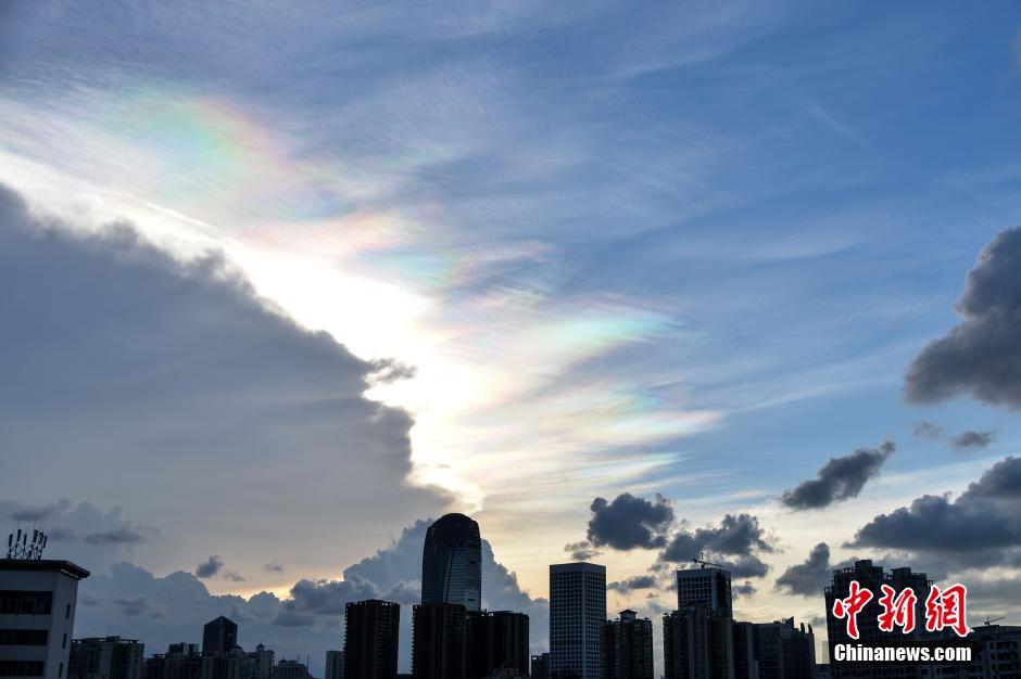 海南省??谑肖慰栅?月25日午後、美しい七色の雲(yún)が出現(xiàn)、特に目を引いていた。この現(xiàn)象は太陽光が雲(yún)を通り抜ける時、屈折と反射作用が起こり、大気中の雲(yún)の中の水蒸気が太陽光を屈折させ、スペクトルの色に分かれて見えるという。中國新聞網(wǎng)が伝えた。(編集JK)